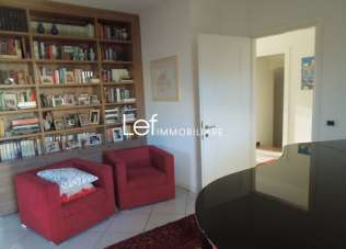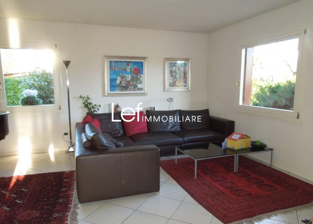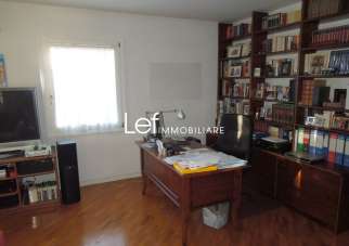 L´abitazione si sivluppa su due piani piu´ l´interrato ed e´ cosi composta: al piano terra ampio ingresso, luminoso soggiorno, cucina, sala lettura, due studi e bagno; al piano primo quanttro camere due bagni, due terrazzi e lavanderia; al piano interrato taverna con camintetto, bagno, due cantine, ripostiglio, sala e garage.