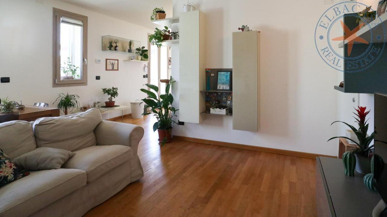 L´appartamento è composto da salotto con angolo cottura, tre camere da letto, due bagni e un ripostiglio. Completa la proprietà un box auto coperto.