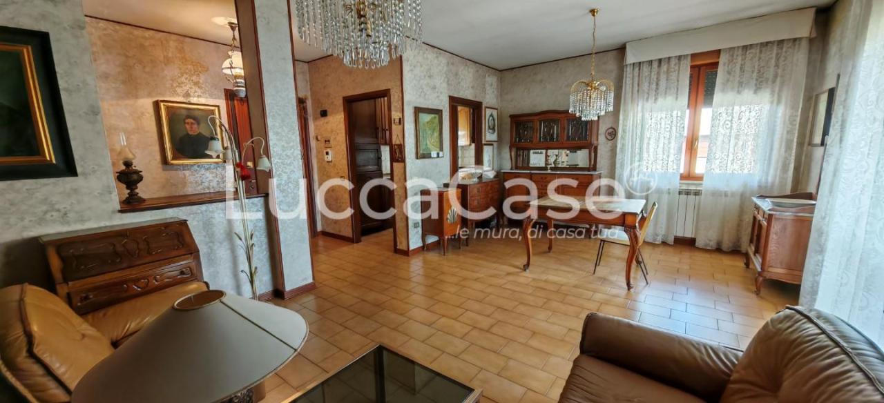 Rif.Ag. E096G - E096G Sant´Anna - Proponiamo in vendita, appartamento arioso e luminoso, sito al 4° piano, raggiungibile da vano scale molto grande e da ascensore. L´abitazione si presenta con finiture originali, ma ben tenute, con infissi in legno duglas e tapparelle. Gli spazi e le aperture presentano la tipica generosità degli anni 70, quando la progettazione degli ambienti non doveva far i conti con strette logiche speculative. Andando nello specifico della distrubuzione interna, si accede all´abitazione dal portoncino blindato, e subito troviamo una zona di ingresso. Alla nostra sinistra una porta ci conduce nel cucinotto, che è dotato di finestra e porta finestra che da accesso al balcone. Attraversando il piccolo ingresso, di fronte alla porta di ingresso troviamo il soggiorno, molto luminoso ed adatto ad accogliere sia la zona pranzo che una zona divaneria. La luminosità è garantita da una finestra e dalla porta vetrata che ci permette di accedere ancora al balcone. Il balcone quindi gira attorno all´appartamento formando una L che corre dalla cucina al soggiorno. A destra dellingresso invece troviamo il reparto notte. Questo si compone di 2 bagni entrambi finestrati, uno dei quali con vasca, 2 camere matrimoniali ed una singola. Abbiamo percìò lo spazio anche per una famiglia numerosa. A corredo dell´appartamento, con accesso dalla resede condominiale ben tenuta, abbiamo un garage con porta basculante. Il riscaldamento è autonomo. Il condominio è molto ben mantenuto e le facciate come la copertura sono stati oggetto di recenti lavori di rifacimento. Infine due parole sulla zona: una delle più servite del comune di Lucca. Nel giro di 300m di distanza, abbiamo a disposizione ben 3 supermercati, oltre a molte altre attività commerciali, come pasticcerie, bar, ristoranti ecc. Classe energetica: E - 78.6 kWh/m2anno - SC9389448
