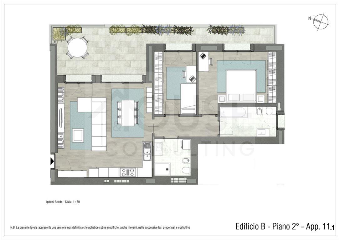 Appartamento al secondo piano di tre locali con doppi servizi 114 mq terrazzo coperto di 25 mq.