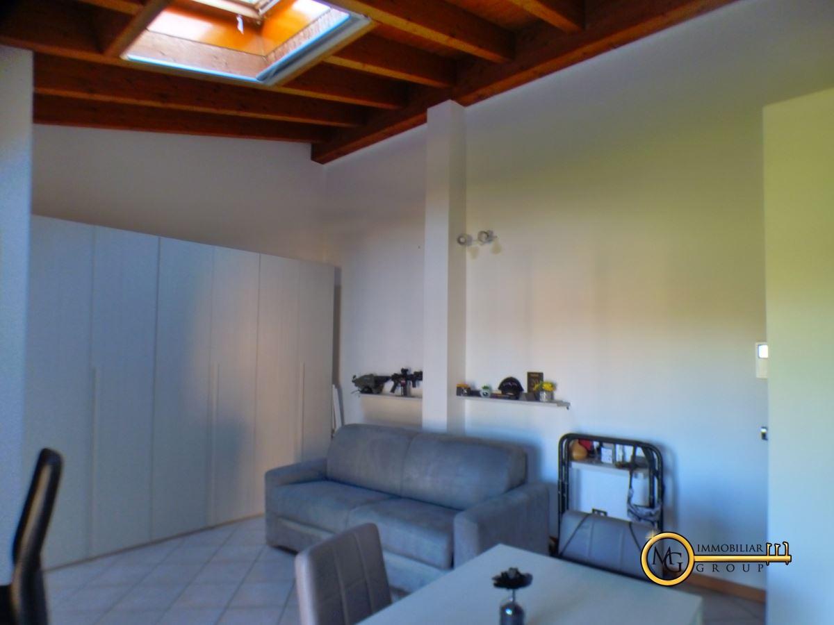Liscate - in zona residenziale proponiamo appartamento sito al primo ed ultimo piano. La proprietà si compone di ingresso nel locale open/space giorno/notte con cucina a vista e accesso ad vivibile terrazzo con ottima esposizione ad est, disimpegno che conduce al bagno con box doccia. Il riscaldamento è a pavimento e gli infissi sono in legno doppi vetri.\nCompleta la proprietà un posto auto.