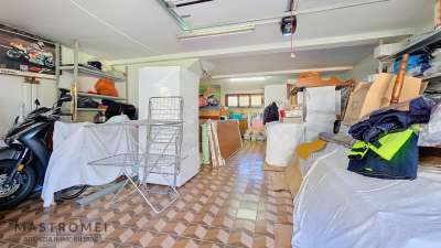 Questa bella villetta a schiera libera su due lati e situata in ottima posizione all´interno di una zona residenziale ben servita e molto tranquilla si presenta in ottime condizioni di manutenzione e così composta al suo interno: al piano terra rialzato troviamo l´ingresso che rimanda ad una sala molto ampia e ariosa, da dove si accede attraverso una porta a vetri alla zona tinello/sala pranzo e cucina con accesso ad un primo balcone ; attraverso una scala larga e facilmente accessibile dalla sala si accede invece al primo piano dove sono presenti le tre camere da letto di cui due camere matrimoniali di cui una con balcone e una camera singola ed un e bagno luminoso con vasca. Attraverso altra scala interna accediamo ad una bella ed ampia zona mansarda completamente pavimentata. Dal piano primo è inoltre possibile accedere sempre attraverso una comoda scala interna anche al garage/taverna molto grande, munita di caminetto, un bagno, ed accesso da basculante elettrico telecomandato. A completamento troviamo un piccolo giardino di proprietà fronte casa. Infissi in legno con doppio vetro. Presenti tutti gli allacci e internet con fibra. Ottima classe energetica di partenza (C). Gli spazi interni sono molto ampi e quindi l´immobile si presta molto bene anche ad una famiglia numerosa ed anche facilmente ad una rivisitazione in chiave moderna degli ambienti. - SC