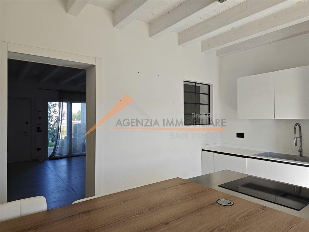Villetta in classe A4. Proponiamo in esclusiva villetta abbinata ai lati costruita nel 2019 con tutti gli accorgimenti per il risparmio energetico essendo la struttura di legno non vi è dispersione di calore e la temperatura si mantiene costante sia in estate che in inverno. La villetta si compone al piano terra di: soggiorno, cucina con affaccio su ampio giardino sul retro, bagno , garage e posto auto. Al primo piano troviamo 3 camere da letto, bagno e balcone.